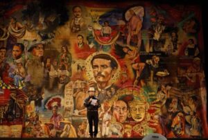 En contraste, Núú Núndúva plasma la identidad cultural de Oaxaca como un gran códice que reúne a los protagonistas del arte y la cultura del estado. En el centro figura Macedonio Alcalá, compositor del vals Dios nunca muere, considerado himno de los oaxaqueños, acompañado por personajes como Eduardo Mata, Francisco Toledo, José Vasconcelos, Rufino Tamayo y Rodolfo Morales.