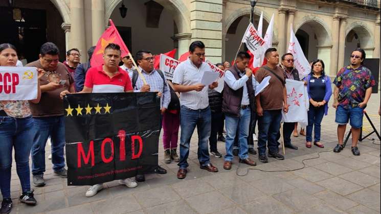 Maestros irrumpen acto oficial en Oaxaca y reclaman reconocimiento a sus conquistas laborales